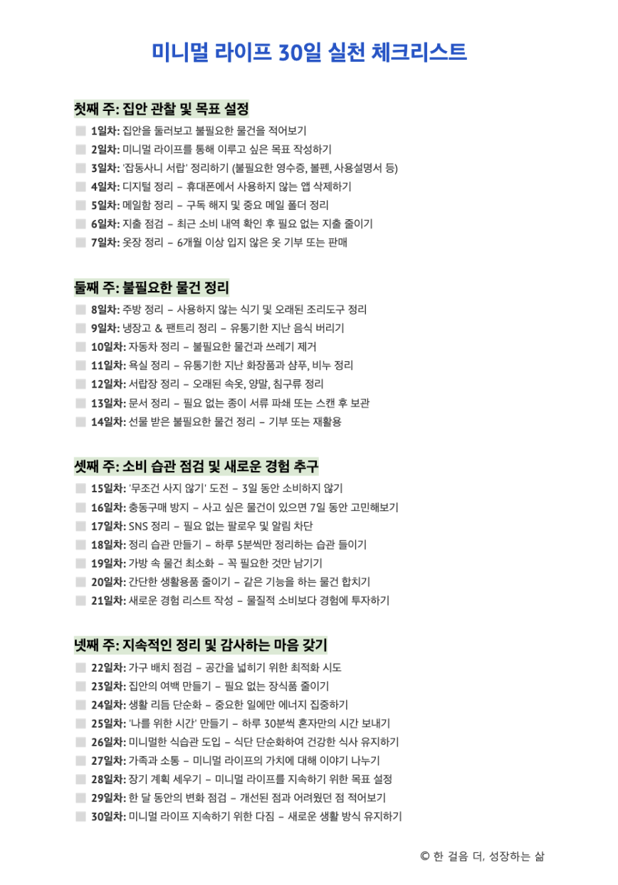 ✅ 30일차: 미니멀 라이프 지속하기 위한 다짐 – 새로운 생활 방식 유지하기