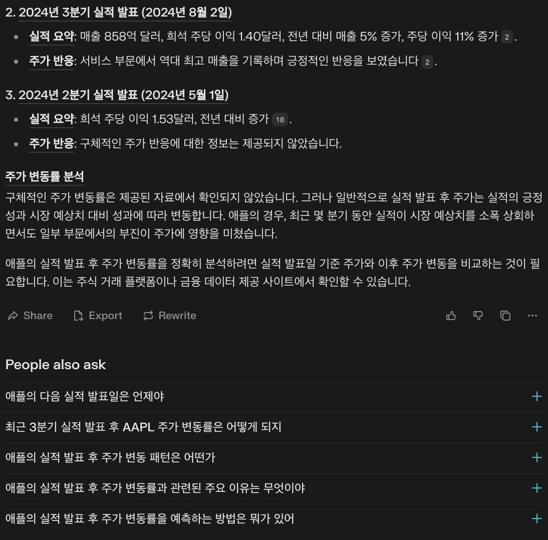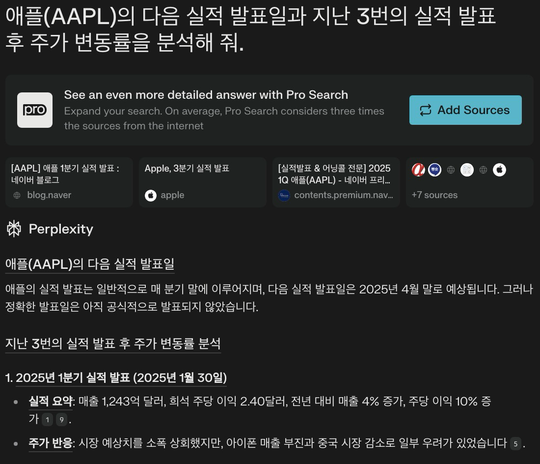 Perplexity AI를 활용하면 실적 발표 일정을 확인하고, 과거 주가 변동 패턴을 분석할 수 있습니다.