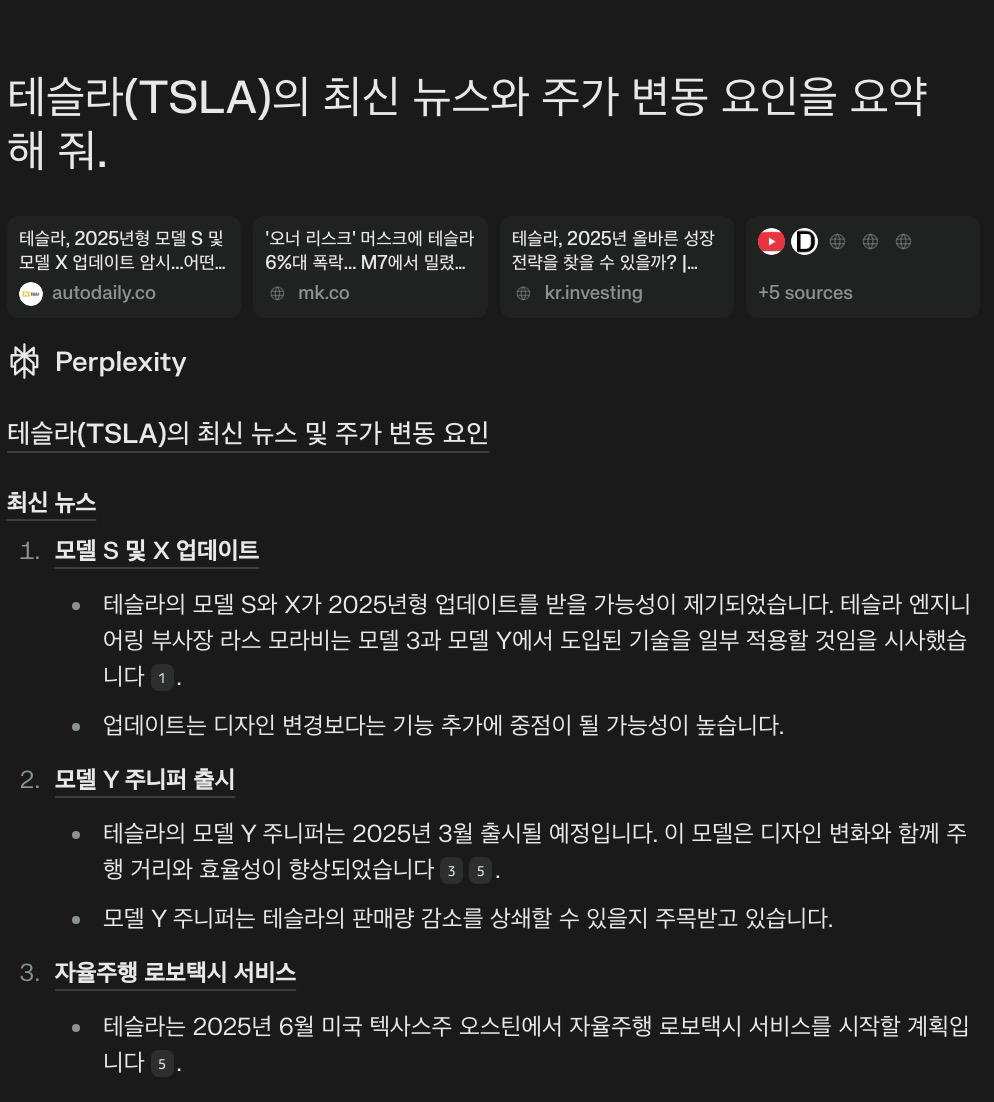 기존에는 Yahoo Finance, Google News 등 여러 사이트에서 정보를 검색해야 했지만, Perplexity AI를 활용하면 한 번의 검색으로 필요한 뉴스를 한눈에 정리할 수 있습니다.